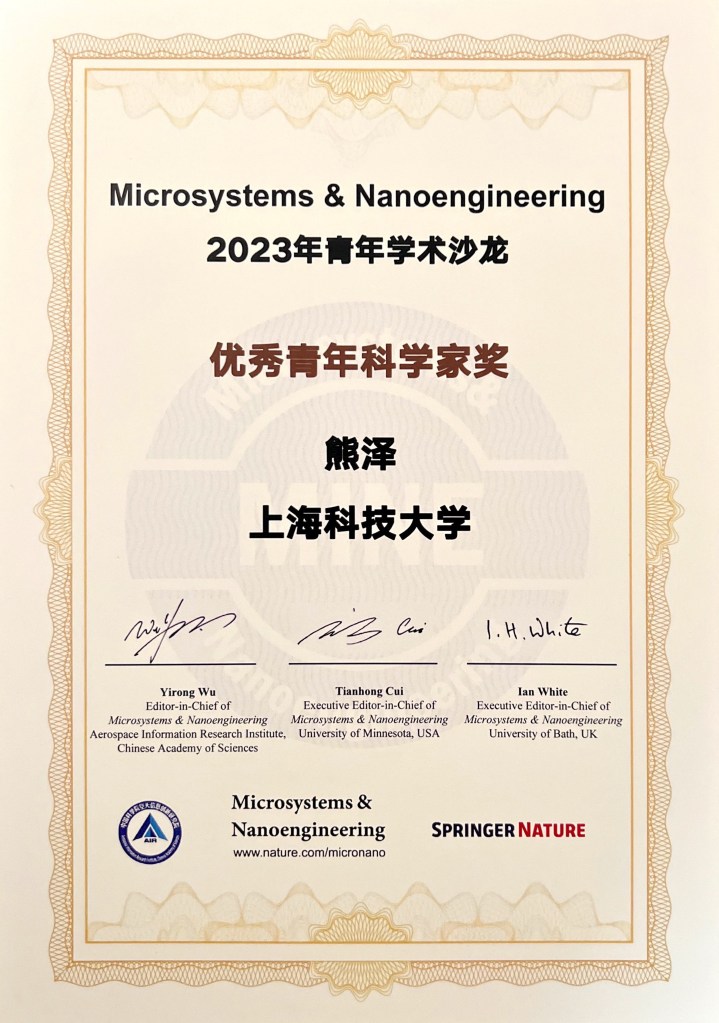 Aug. 2023 Dr. Xiong received MINE 2023 Young Scientist Award, Microsystems & Nanoengineering (Nature Publishing Group).