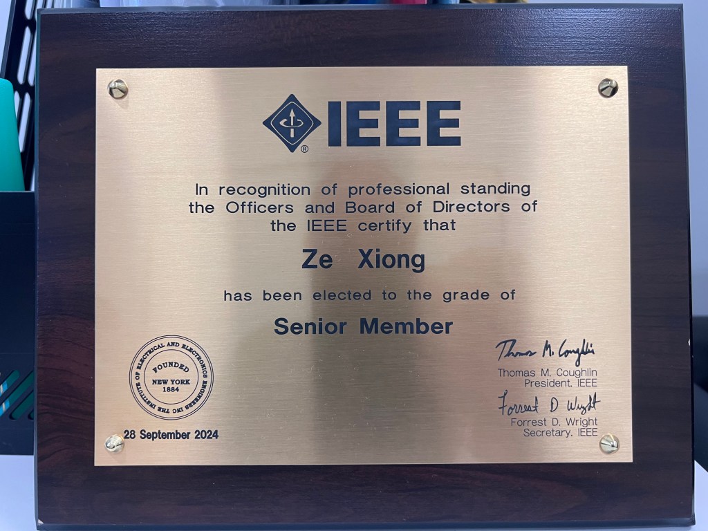 Oct. 2024 Dr. Xiong was elevated to IEEE Senior Member.